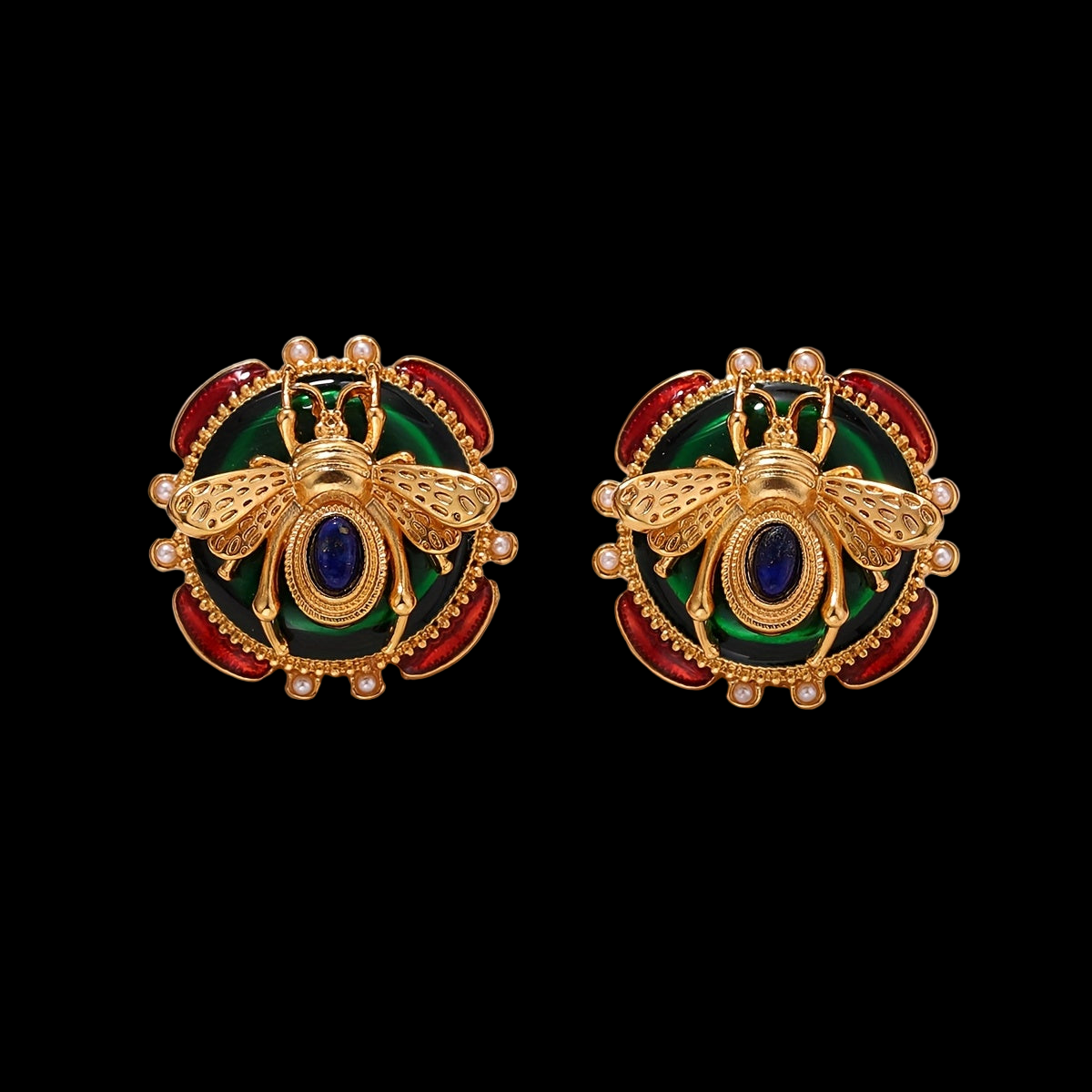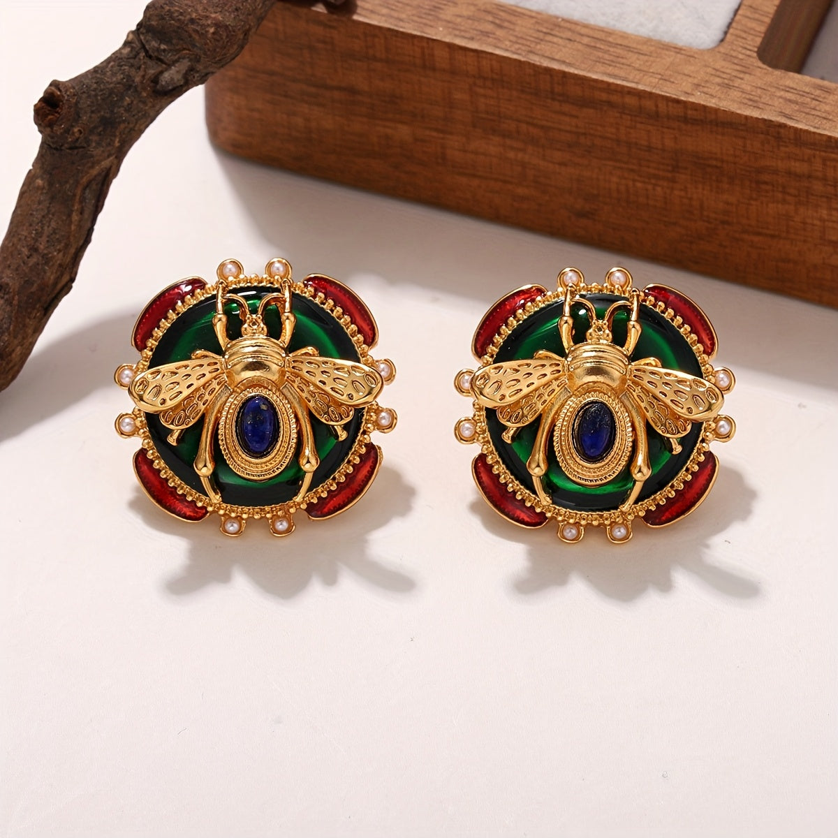 • Handcrafted vintage bohemian design featuring intricate enamel bee motifs with inlaid pearl and turquoise accents