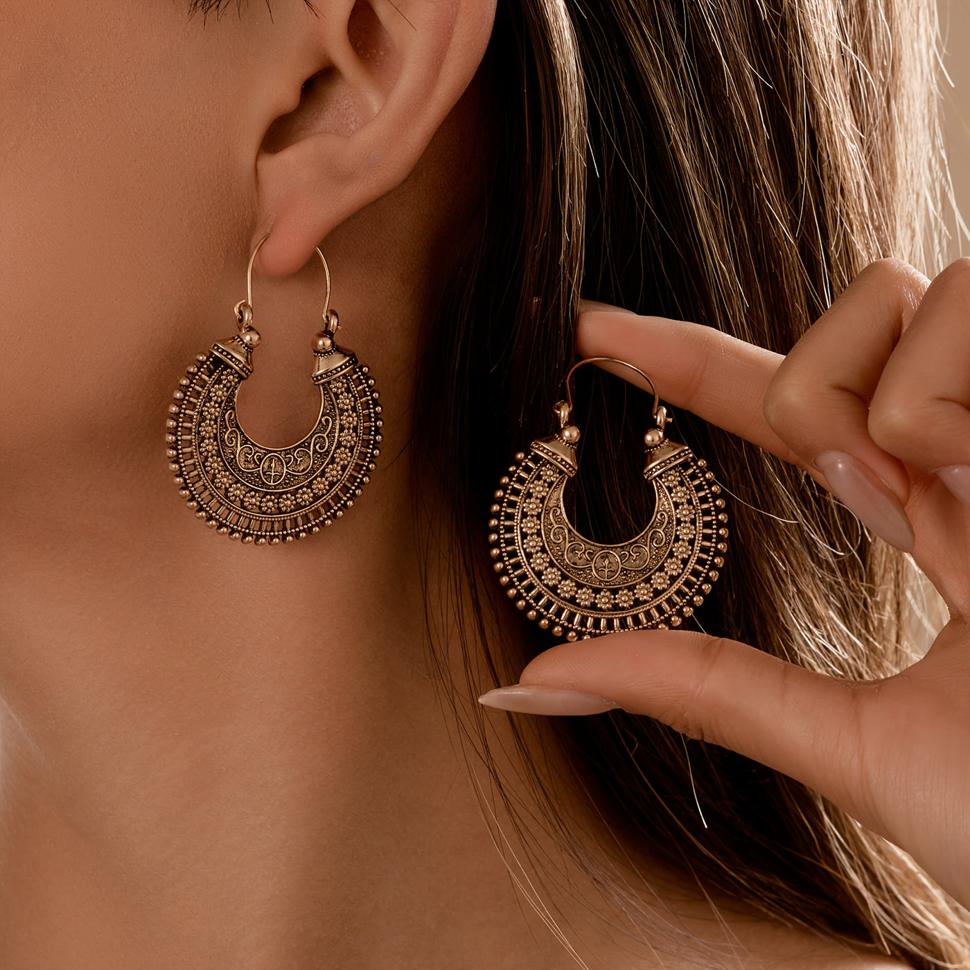 Bronze Bohemian Ethnic Minimalist Hoop Earrings