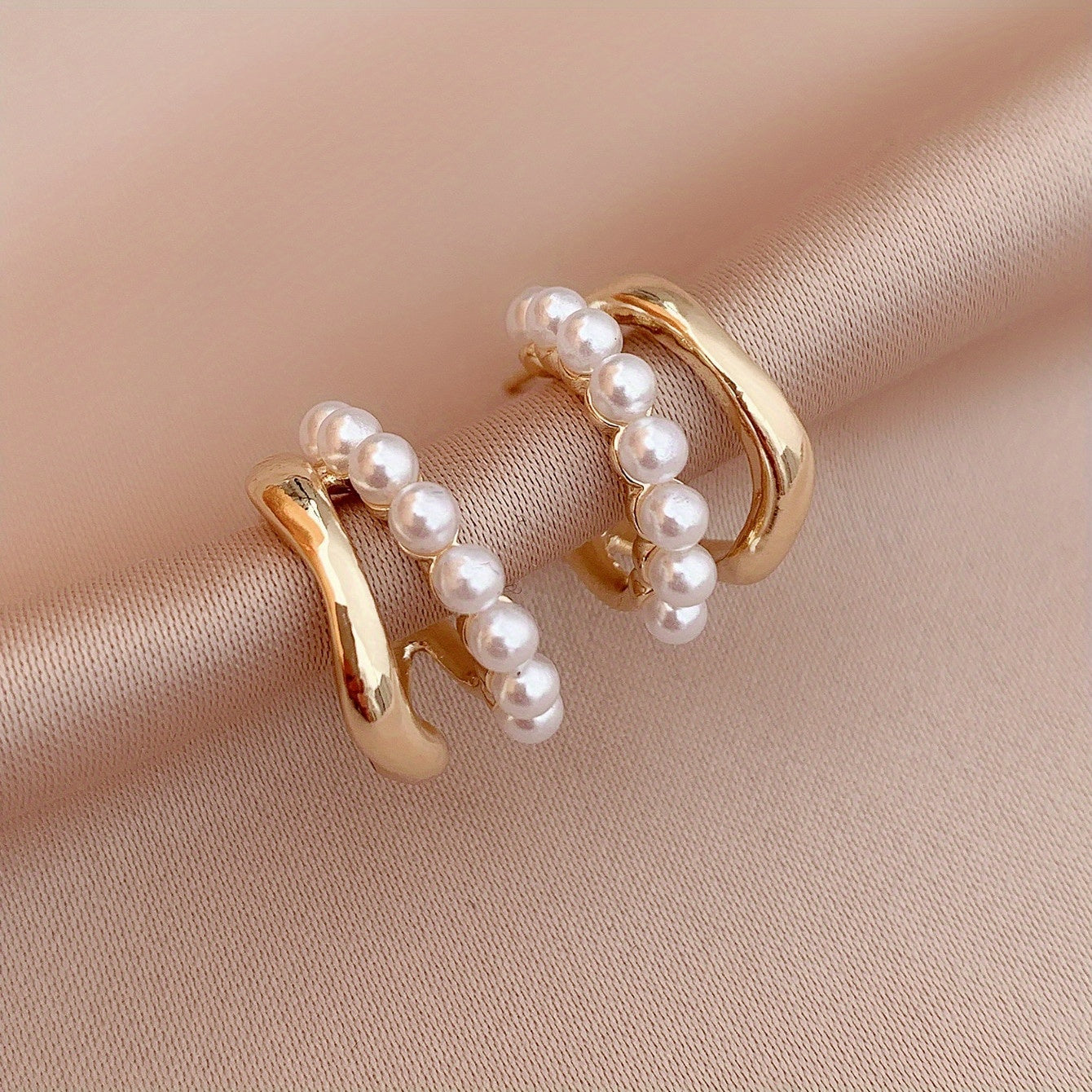 Double-layer Faux Pearl Decor Hoop Earrings Japanese/ Korean Style Alloy Jewelry Versatile Ear Ornaments Trendy Female Gift