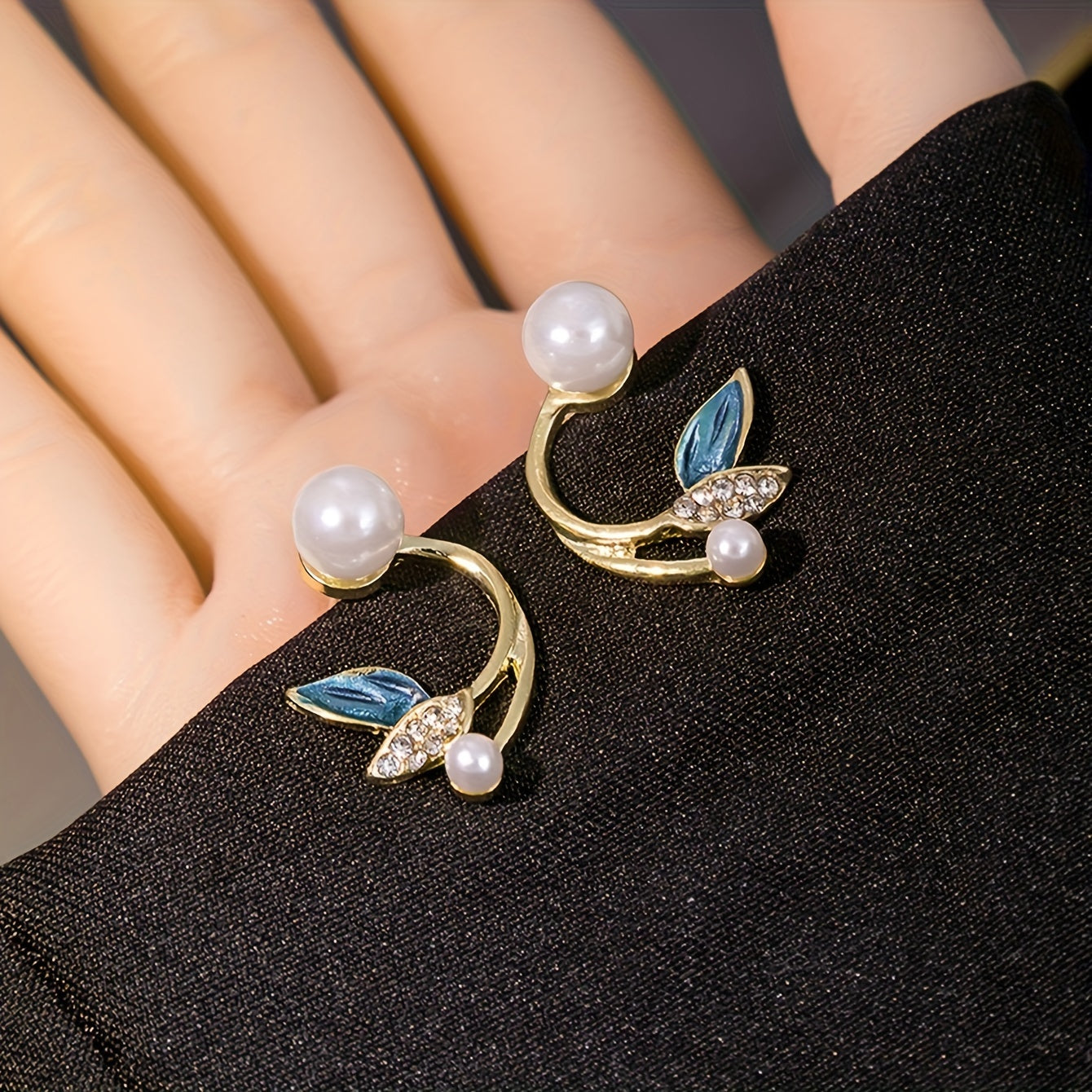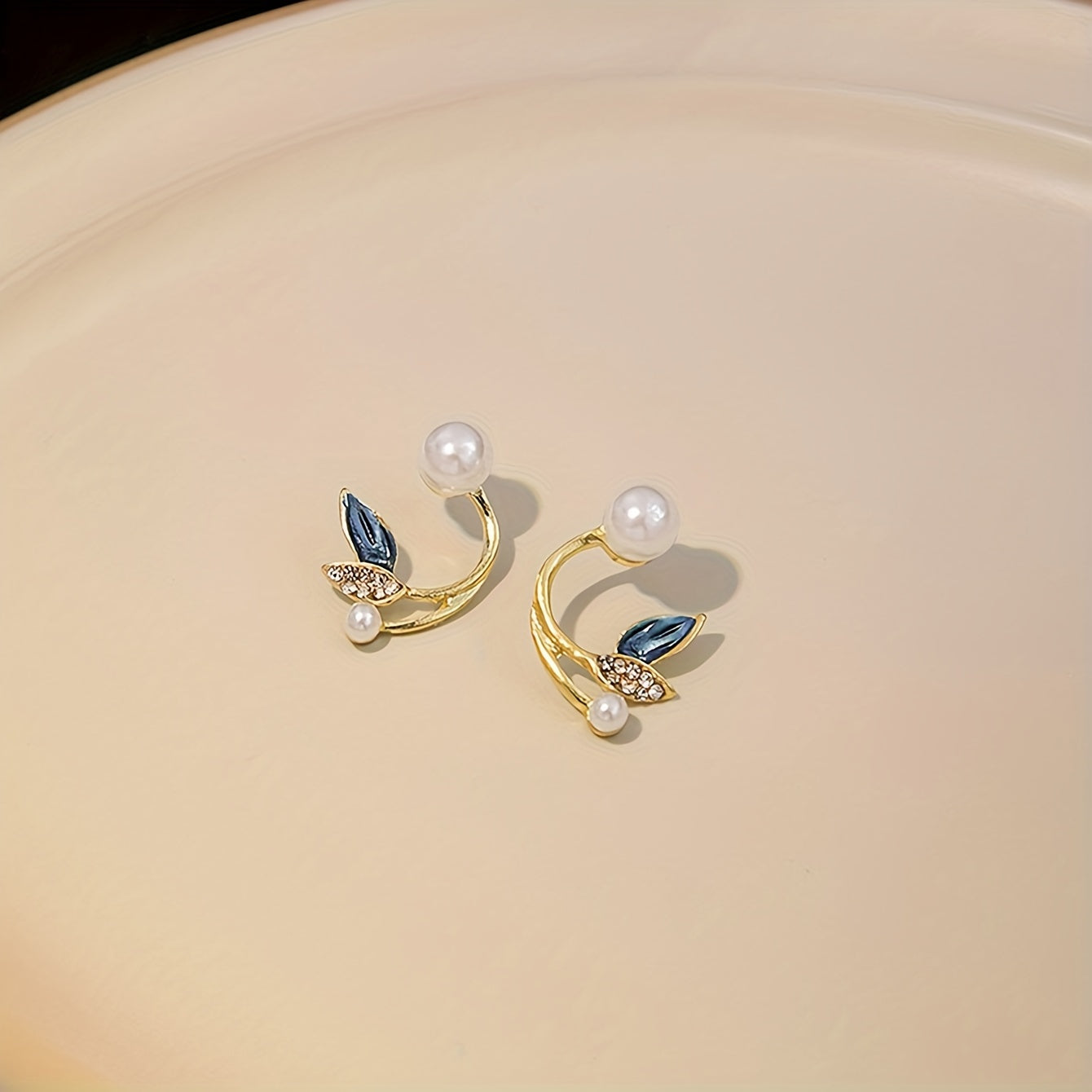 Pretty Leaf Imitation Pearl Design Stud Earrings Alloy Jewelry Vintage Elegant Style Suitable For Women Daily Wear