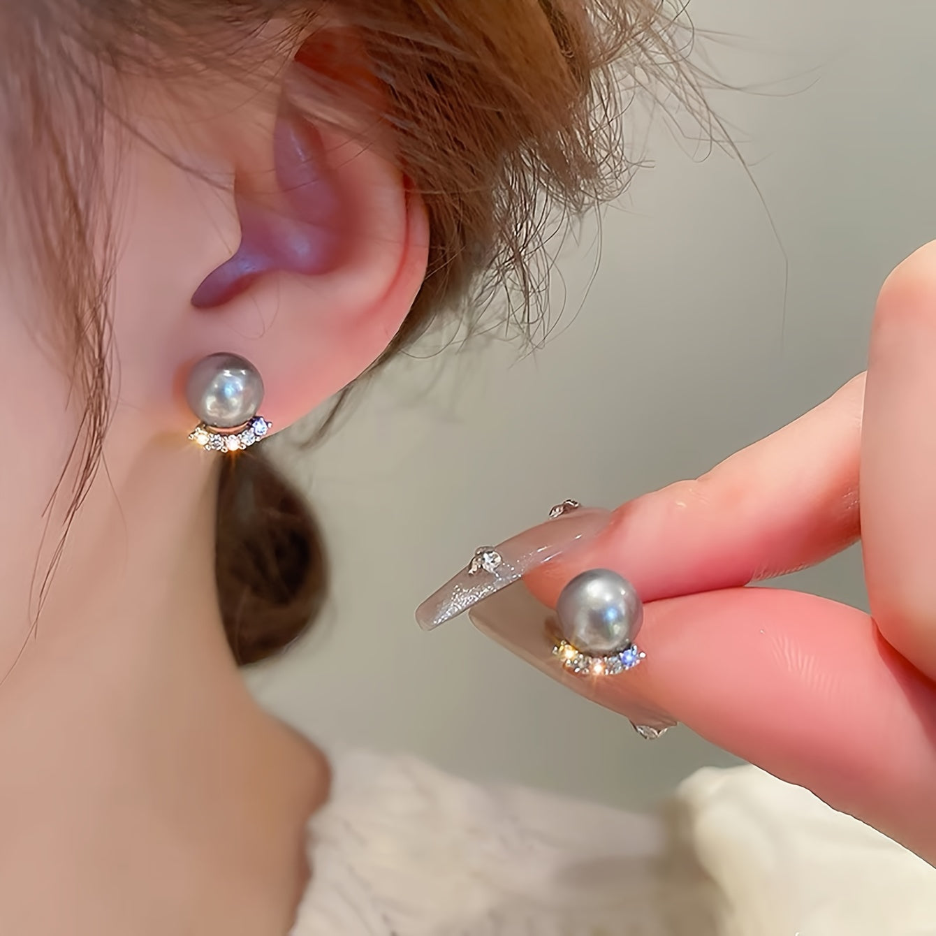 Tiny Grey Pearl Earrings