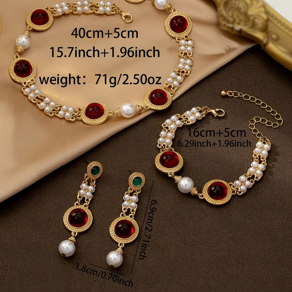 A Set of Four Stylish Vintage Court Jewelry Pieces for Women, Including Necklaces, Bracelets, And Earrings