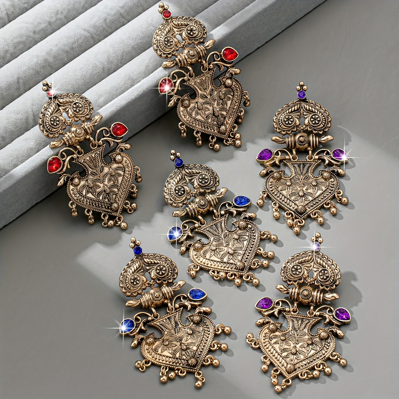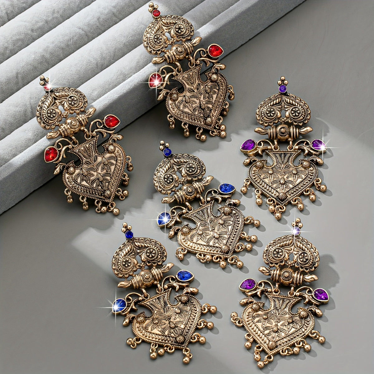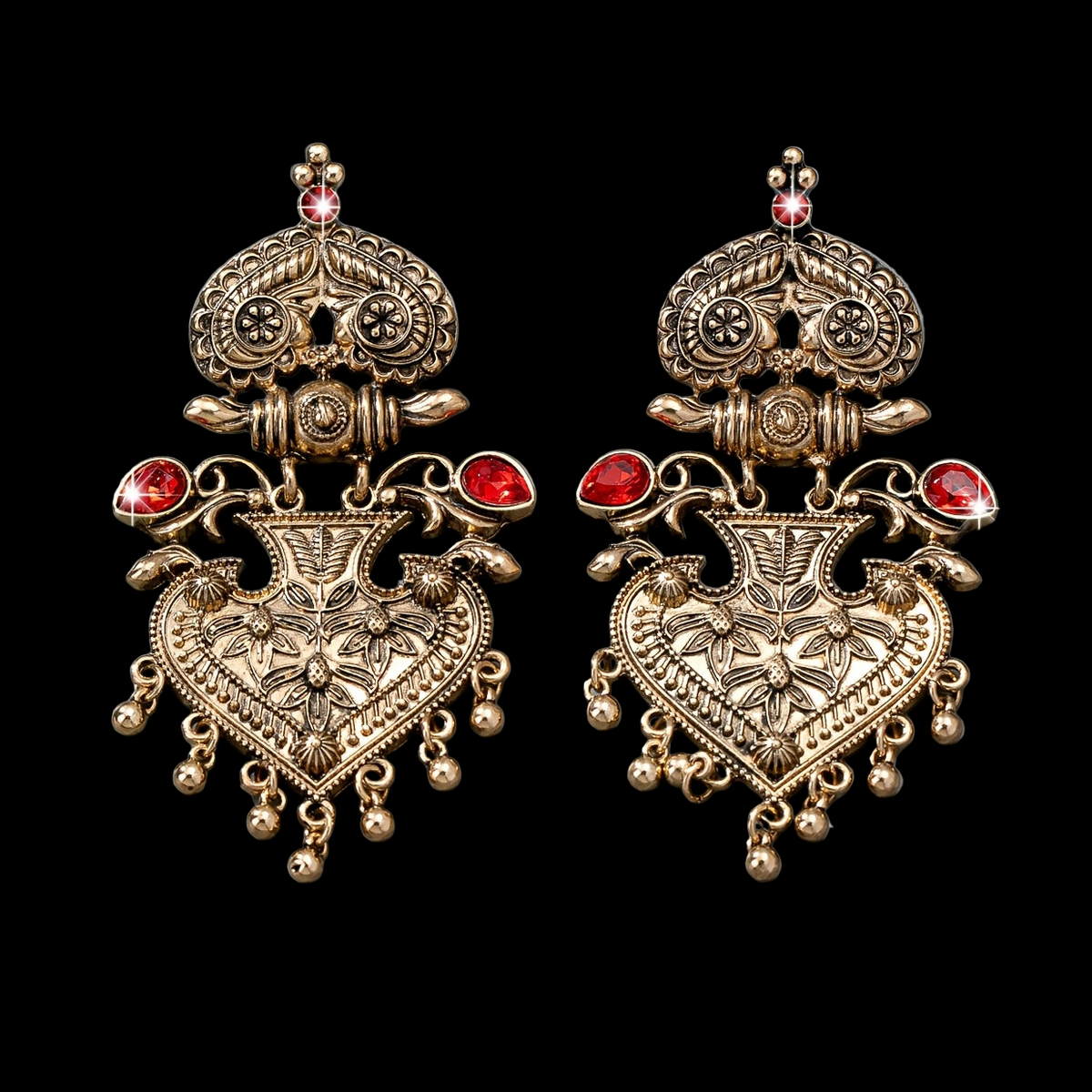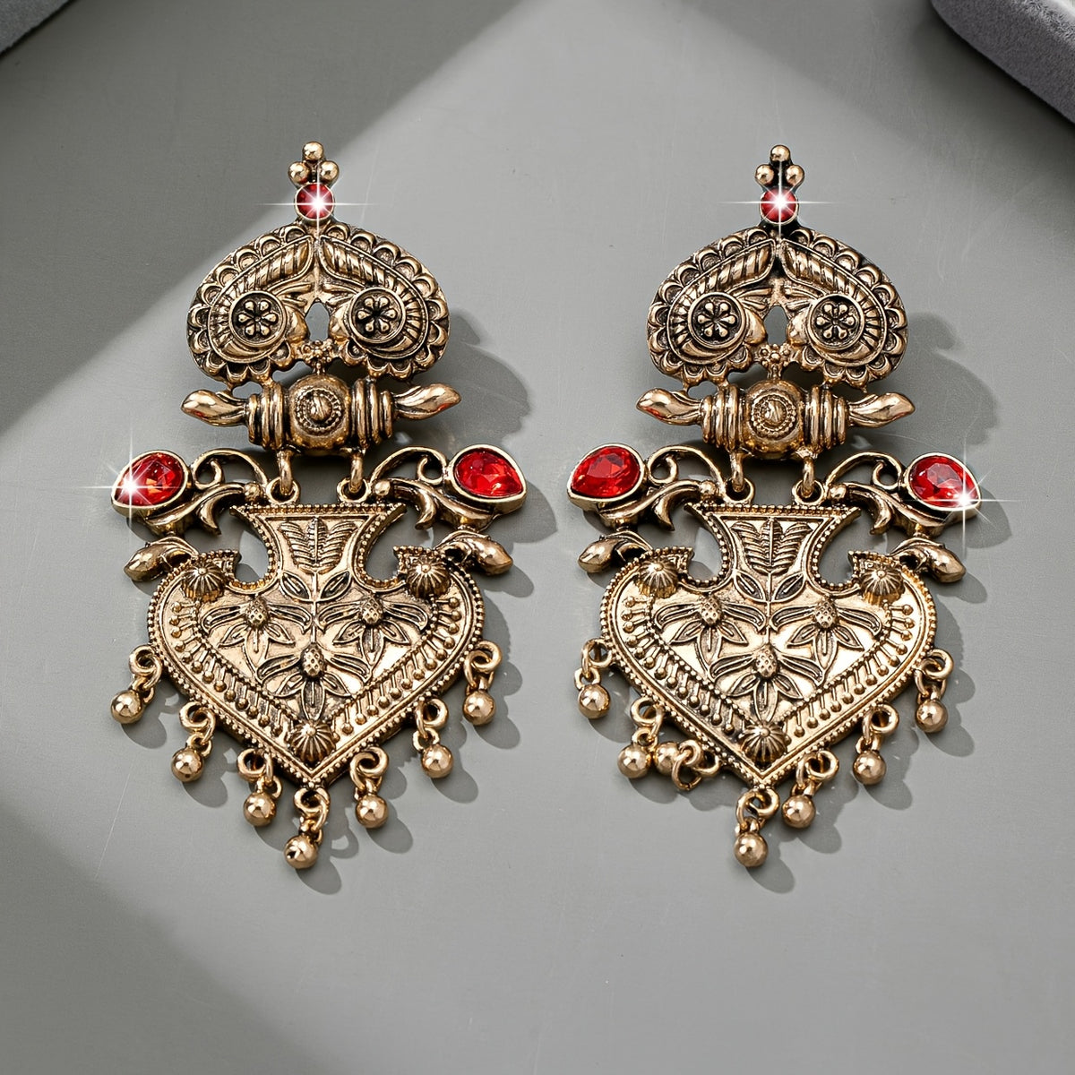 Vintage Heart Tassel Earrings - Red